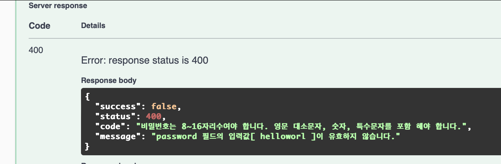 비밀번호를 입력하지 않고 요청을 보낼 때 @Pattern, @NotBlank 가 무작위한 순서로 검증 되는 문제 점을 확인했습니다.