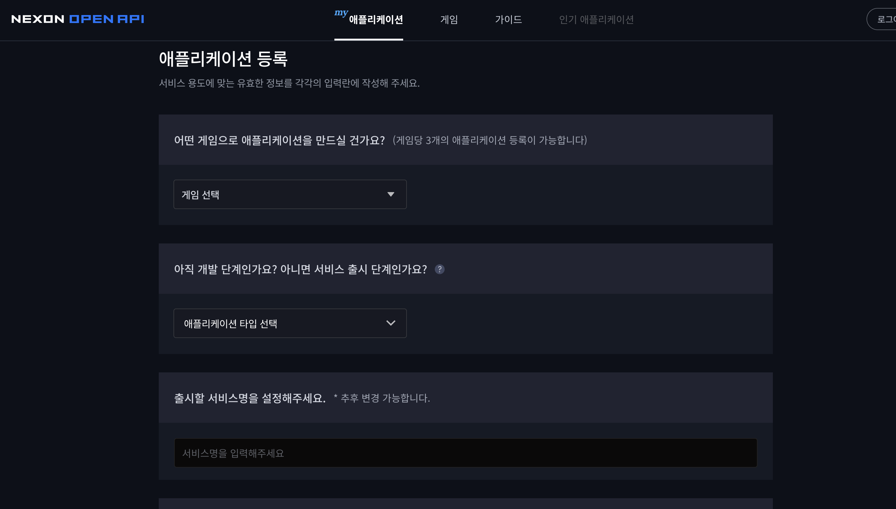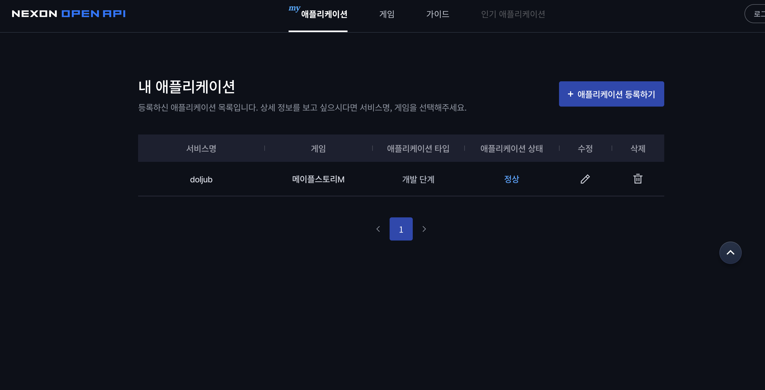 상단바->애플리케이션->애플리케이션 등록->+애플리케이션 등록하기