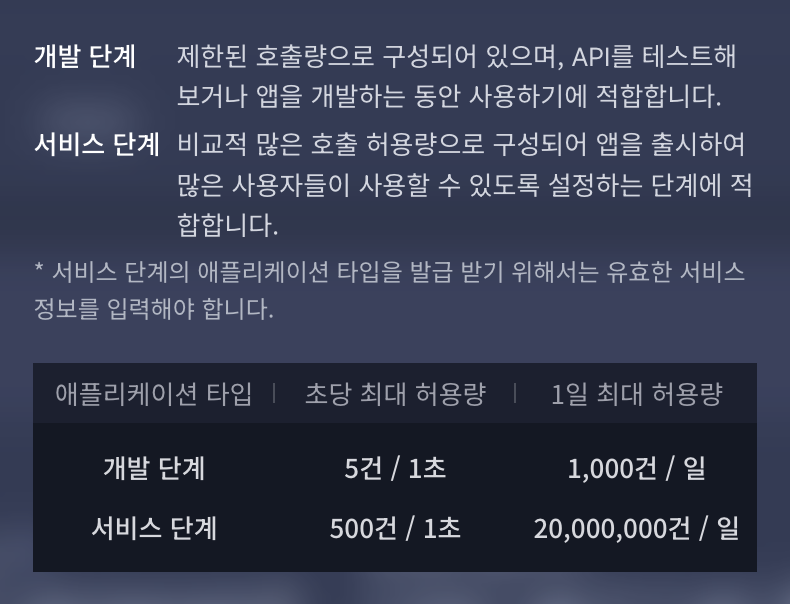 현재 내가 발급 받은 애플리케이션은 개발 단계로 되어있다.