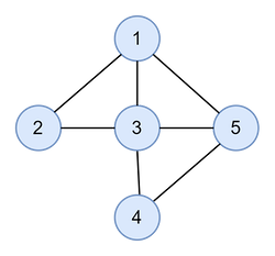graph1 = {1: [2, 3, 5], 2: [1, 3], 3: [1, 2, 4], 4: [3, 5], 5: [1, 4]}