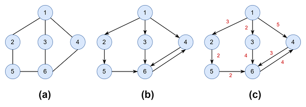 다익스트라 알고리즘의 기본 개념은 최단 경로는 여러 개의 최단 경로로 이루어진다는 것이다. 가중 그래프를 보자.