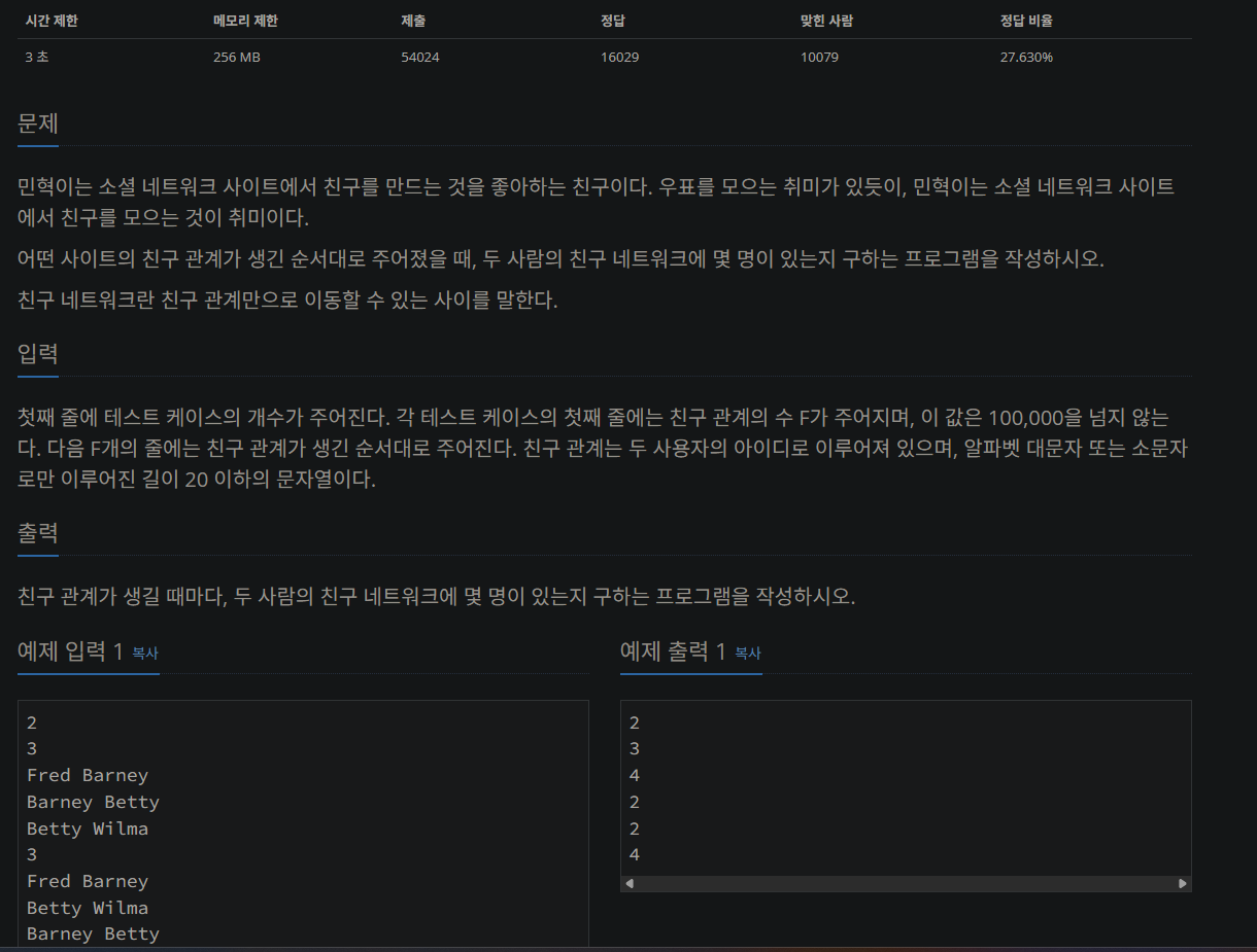프로그래머스 알고리즘 고득점 kit 해시 파트를 풀고 나서 백준으로 넘어와서 풀어보고 있는데 이 문제에서 막혔다;;