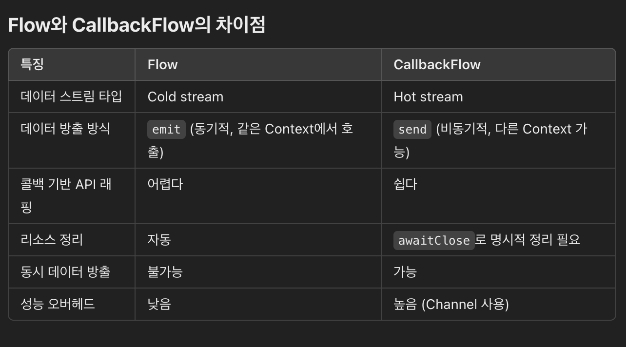 다른 CoroutineContext 를 사용할 경우, Flow 일관성을 깨뜨릴 수 있다. 특히, Flow 는 순차적 데이터 흐름과 쓰레드 안정성을 보장하기 위해 설정된 제약이 있습니다.