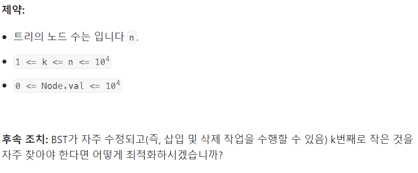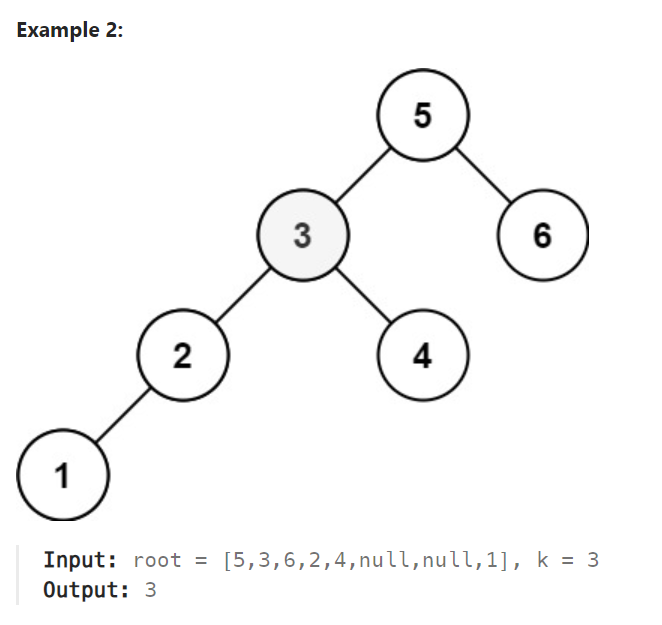 - 트리의 루트와 정수 k가 주어졌을 때, 트리의 모든 노드 값 중에서 k번째로 작은 값을 (1부터 인덱스화하여) 반환합니다.