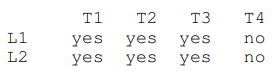 예를 들어, 두 프로세서와 네 스레드들이 있다고 하자. 또한 스레드 T1은 락 L1과 L2, T2도 L1, L2, T3는 L2을 가져야 하고, T4는 어떤 락도 얻지 않는다고 가정하자. 표로 나타내면 다음과 같다.
