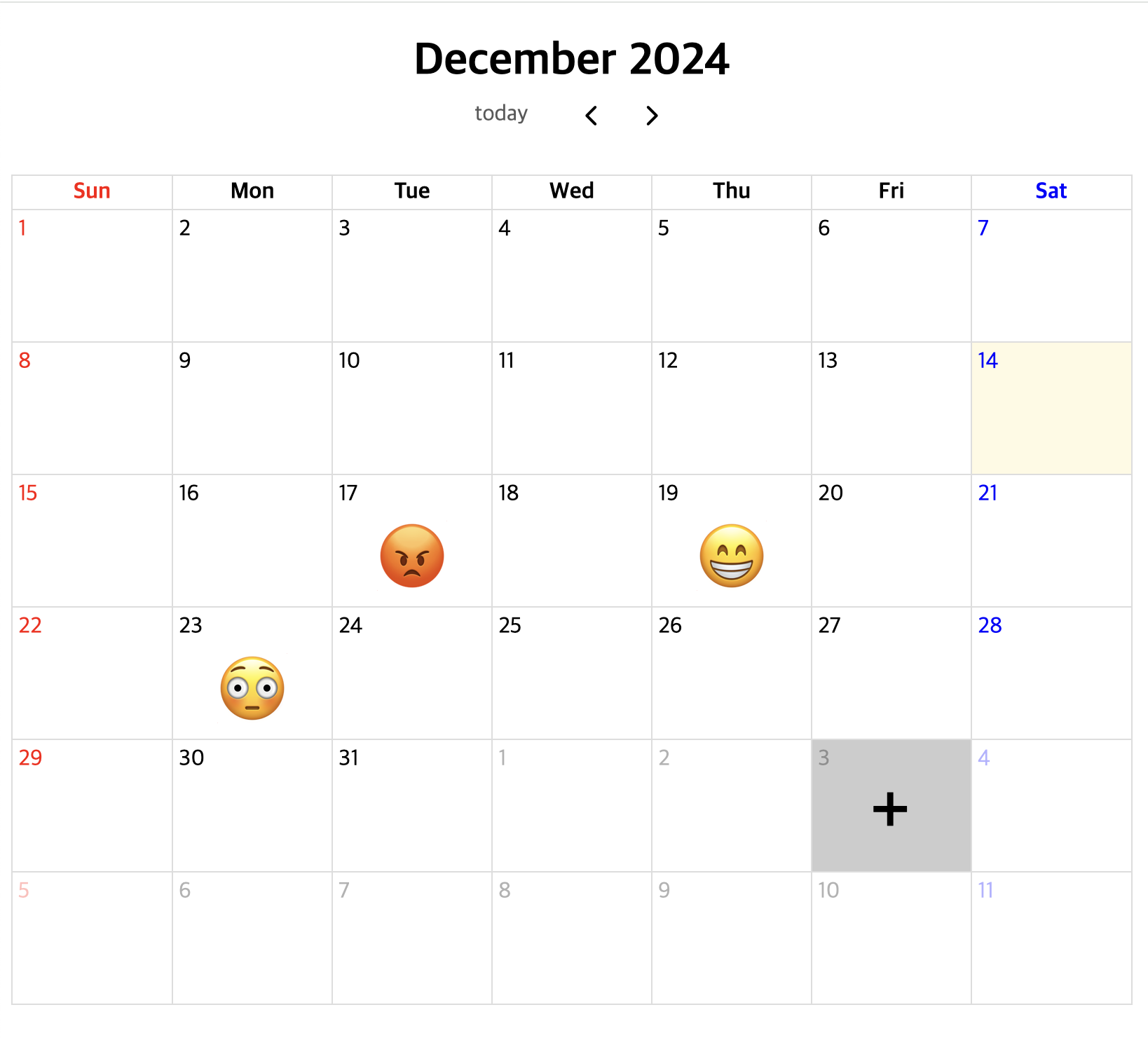 { title: '๐ณ', date: '2024-12-23', },