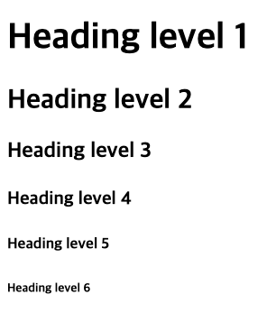 • 글자 크기를 조절하려고 <h1>을 사용하지 말 것 → 대신 CSS의 font-size 사용