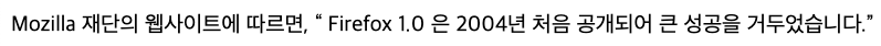 Firefox 1.0 은 2004년 처음 공개되어 큰 성공을 거두었습니다.</q>