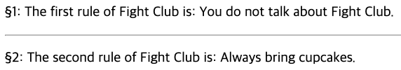 <p>§1: The first rule of Fight Club is: You do not talk about Fight Club.</p>