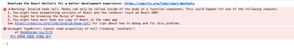 ์ค๋ฅ๋ฅผ ํด๊ฒฐํ๊ธฐ ์ํด์๋ const state = useState(); ๋ฅผ ํจ์ ์ปดํฌ๋ํธ ์์ ๋ฃ์ด์ฃผ๋ฉด ๋๋ค.