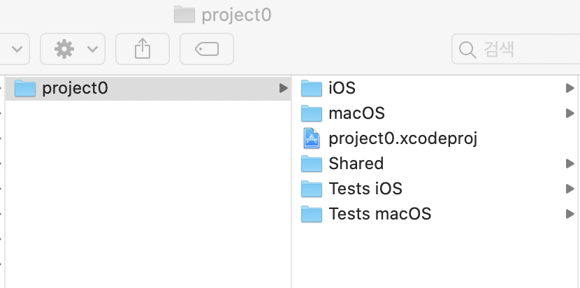 생성된 프로덕트를 살펴보니 많은 폴더와 .xcodeproj