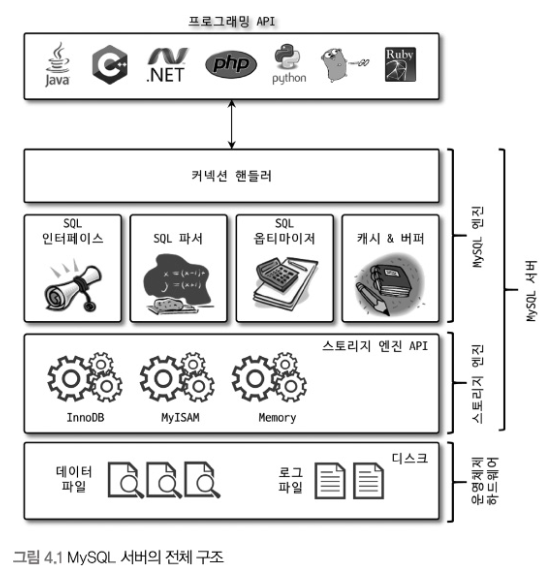 MySQL 서버는 크게 사람의 머리 역할을 담당하는 MySQL 엔진과 손발 역할을 담당하는 Storage 엔진으로 구분할 수 있다.