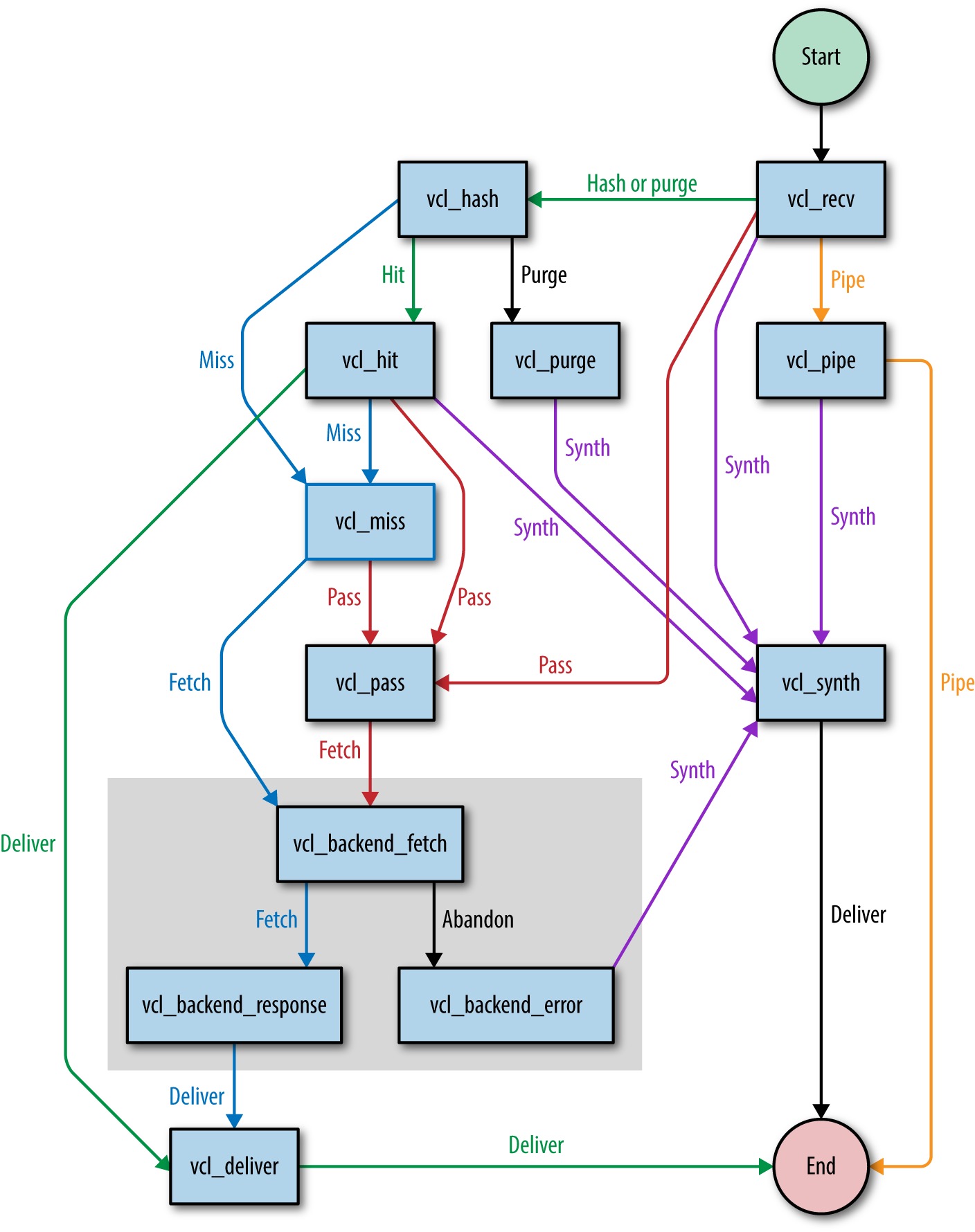 만약 이 return문을 명시적으로 정의하지 않으면(정해진 양식을 지키지 않으면), VCL코드는 유효하지 않게 되어 varnish는 기본값인 built-in varnish로 동작하게된다.