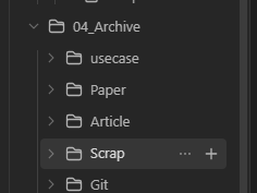 예를 들면 04_Archive의 paper, article, scrap들이 모두 01_Dashboard의 journal에 들어간다.