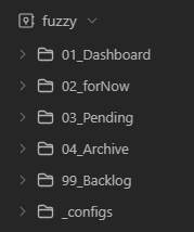 fuzzy라는 vault 아래 6개의 폴더가 있다.