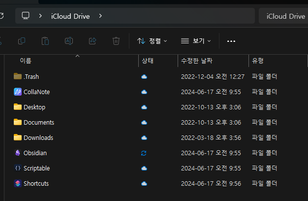 대충 이런식의 디렉토리가 만들어지는데 ( 만약 obsidian폴더가 없으면 vault를 만들고 조금 기다리면 된다. )