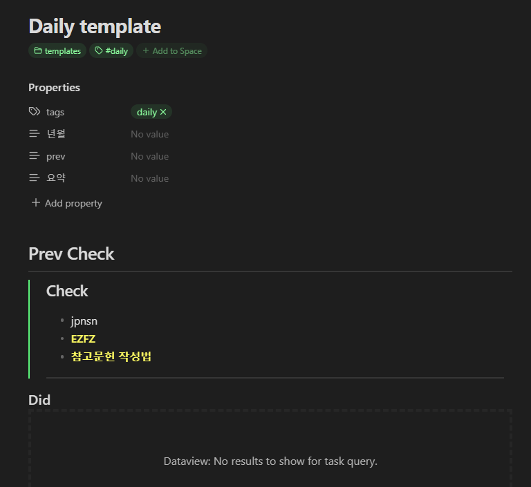 이 항목은 모든 daily 노트의 최상단에 노출된다.