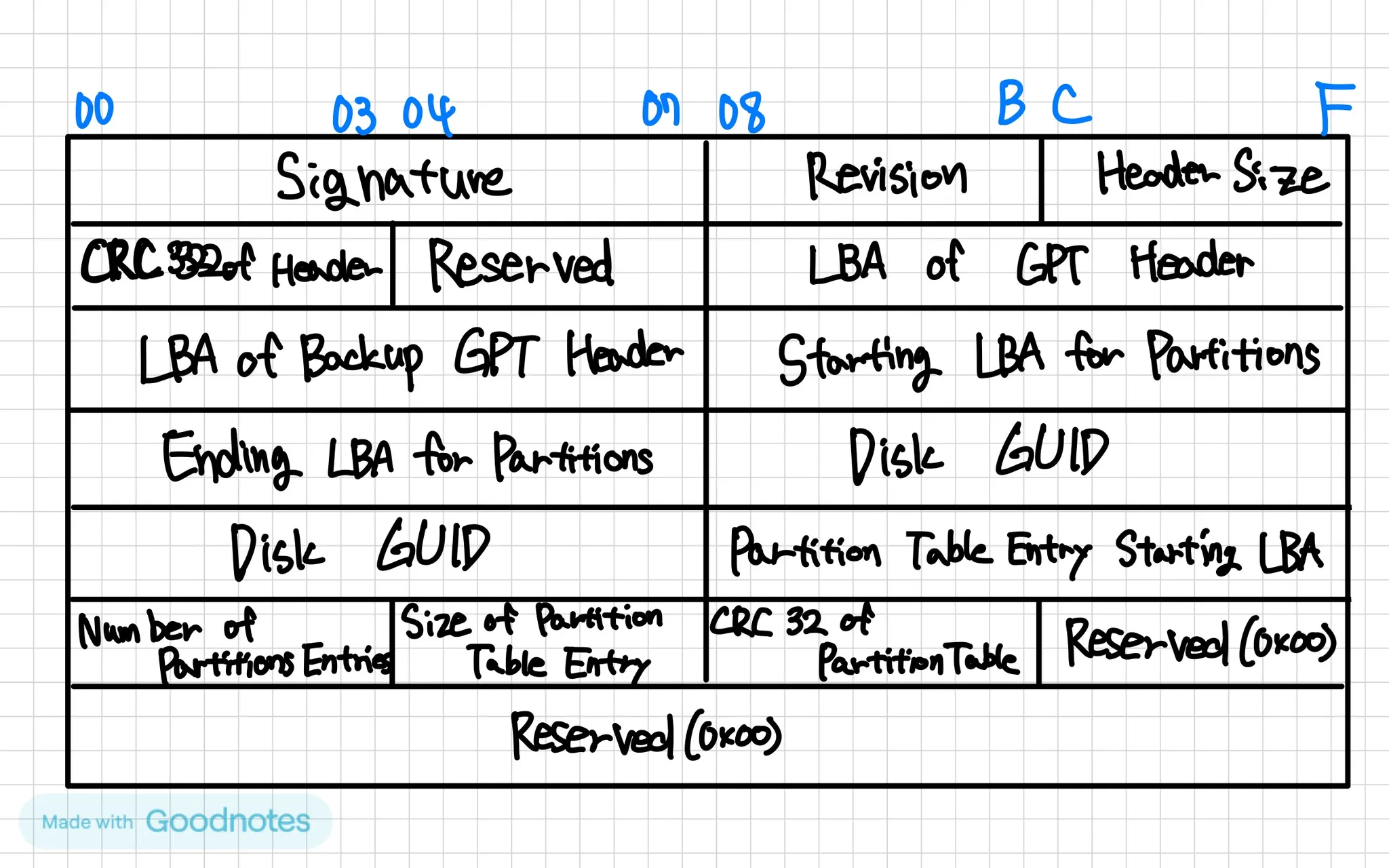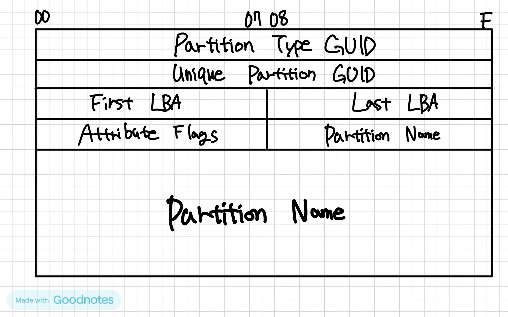 | 0x0 ~ 0xF | 16 | Partition Type GUID |