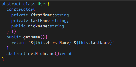 Call Signature로만 적을 수 있다. 추상메소드는 추상클래스를 상속받는 클래스에서 반드시 구현해야하는 메소드를 말한다.1. private