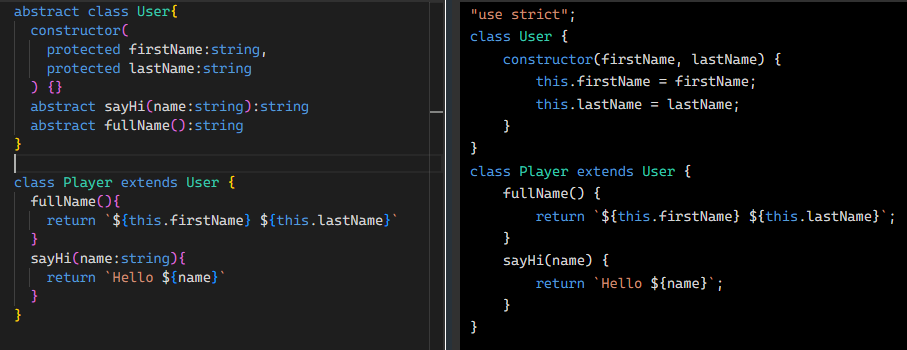 근데 위의 코드의 문제점은 JS에서는 추상클래스가 존재하지 않는다. 우리가 작성한 추상클래스는 JS에서 일반적인 클래스로 바뀐다. 왜냐면 JS에는 추상클래스가 존재하지 않기 때문이다.