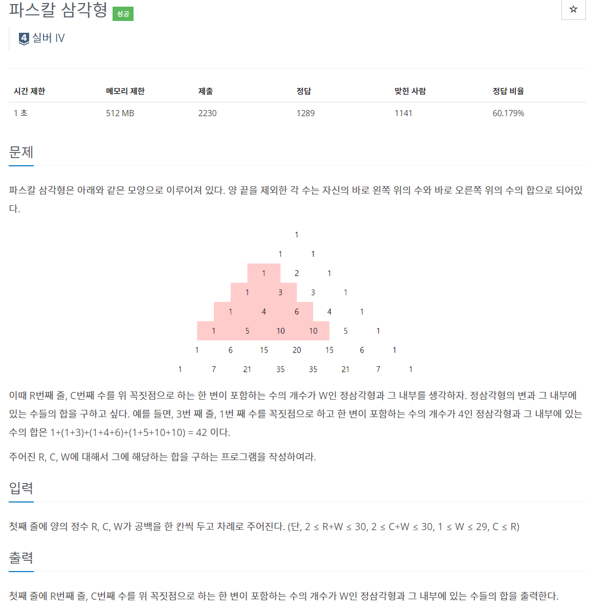 16395 파스칼의 삼각형의 풀이를 사용