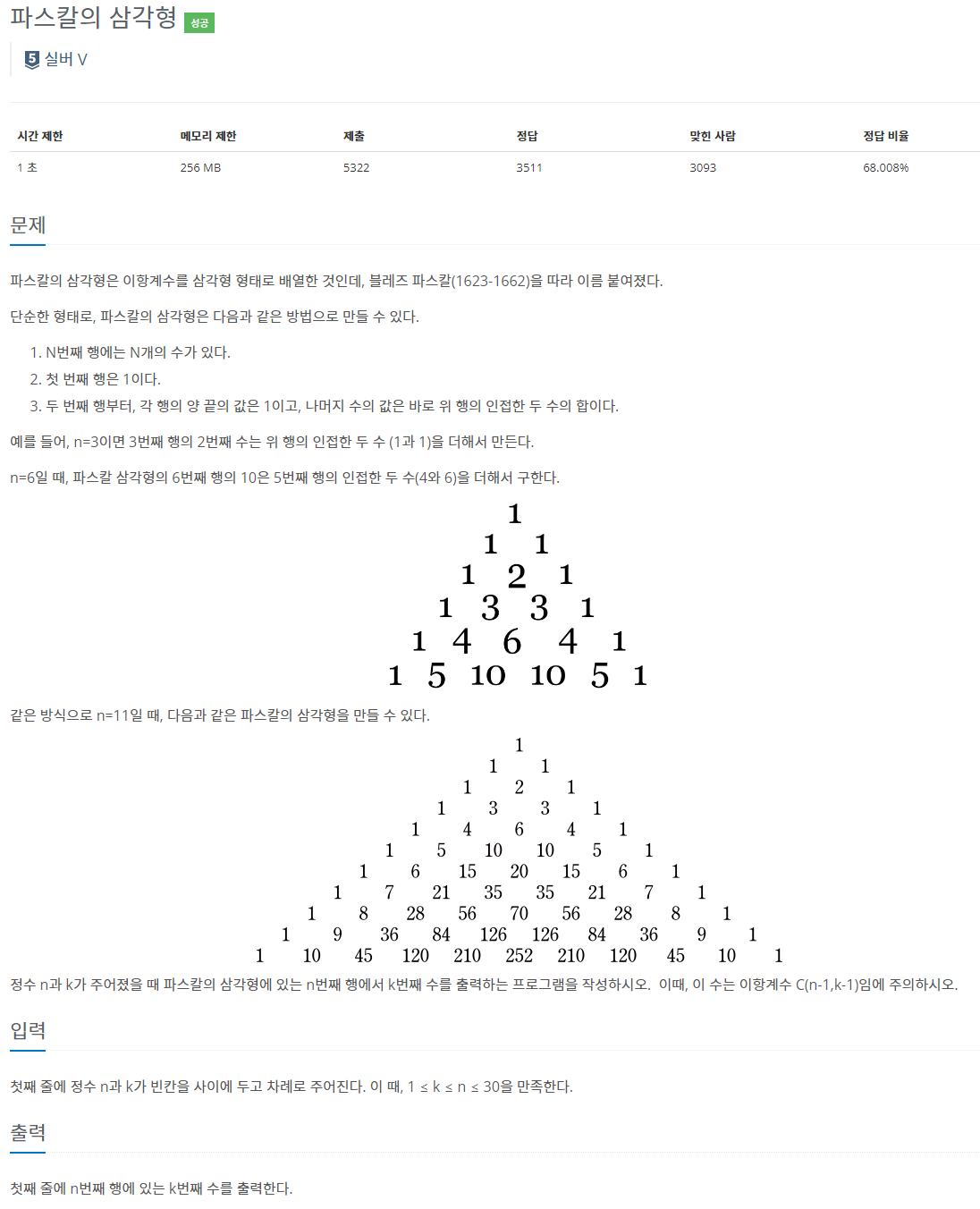 dp[i][j] = dp[i-1][j-1] + dp[i-1][j];