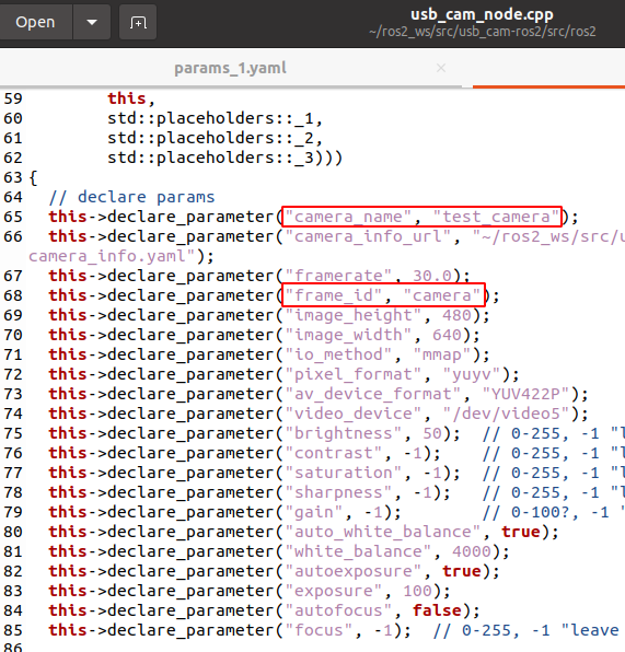 usb_cam_node.cpp파일에서 고쳐야할 파라미터도 있다.