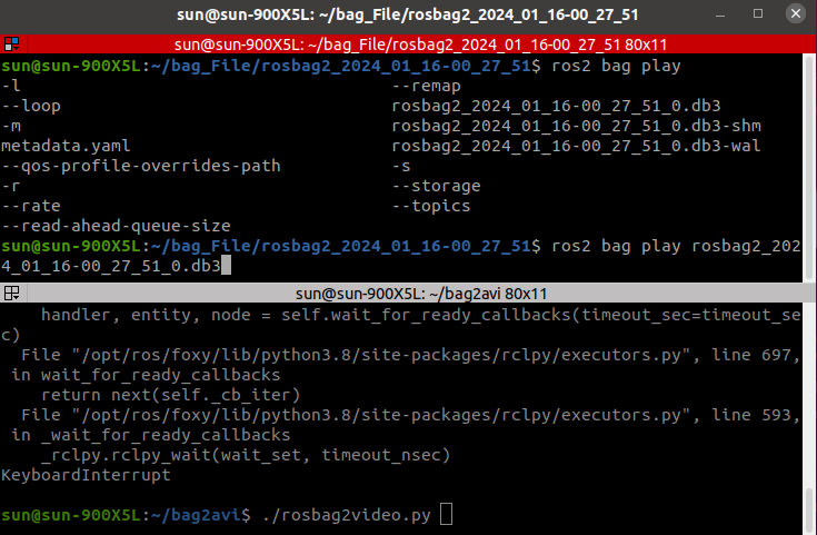 내가 원한 것은 /image_raw를 저장한 백파일을 통해 비디오를 추출하는 것이었다.