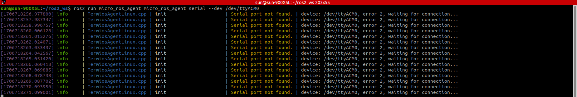 ros2 run micro_ros_agent micro_ros_agent serial --dev /dev/ttyACM0