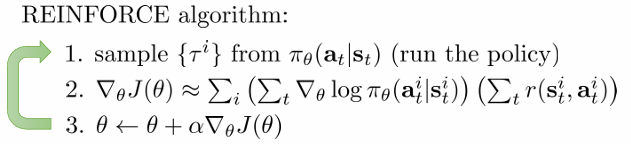 J(θ)=Eτ∼pθ(τ)[t∑r(st,at)]≈N1i∑t∑r(si,t,ai,t)