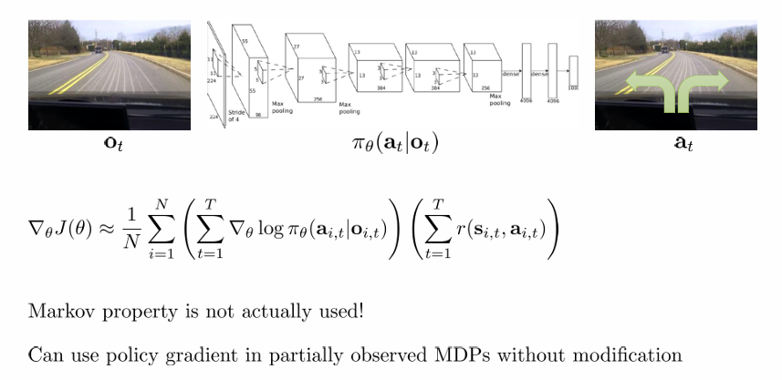 partial observability case에 대해서도 딱히 변화 없이 식을 사용할 수 있습니다. 이 경우 policy는 어차피 observe에 의해 결정되는 것이고, reward는 state와 action에 대한 함수니 식을 이렇게 쓰는 것 뿐입니다.