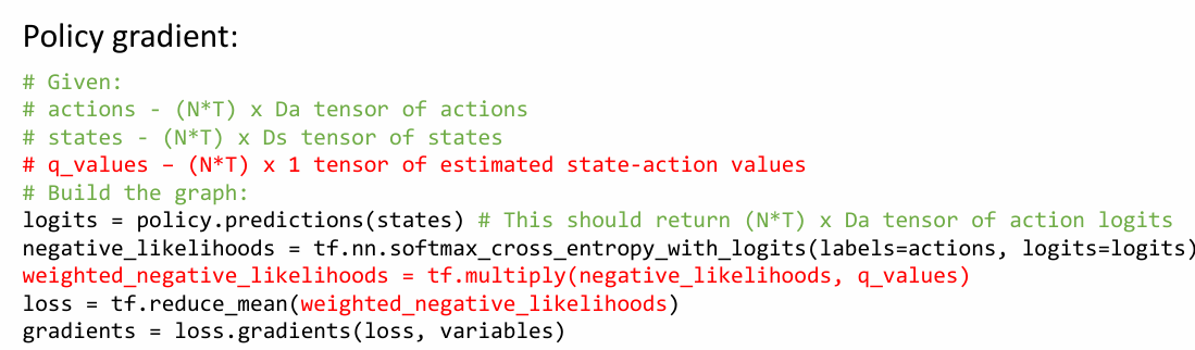 이 코드를 이용해 policy gradient의 코드를 작성할 수 있습니다.