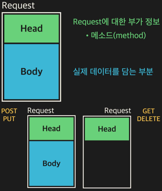 GET과 DELETE의 경우에는 단순히 request를 조회하고 삭제하기 때문에 Body가 존재하지 않는다.