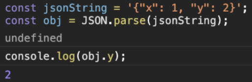 JSON 객체에 parse 메소드를 사용하면 string 타입의 JSON 데이터를 자바스크립트 객체로 표현할 수 있게 된다. 즉, 자바스크립트 배열 형태로 변환한다.