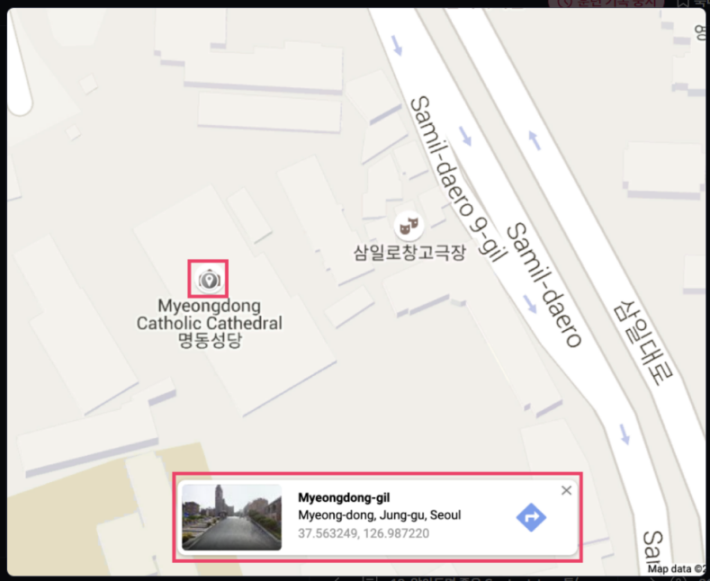 현재 웹 페이지는 그대로 유지되고, 단지 그 밑에 명동 성당에 관한 간단한 정보창이 떠오른다. 이것이 가능한 이유는 웹 브라우저가, 사용자가 보고 있는 현재 페이지를 방해하지 않고 별도로 Server로 request를 보내고, response를 받아왔기 때문이다. Ajax 기술 덕분에 구글 맵처럼 부드러운 UX(User Experience, 사용자 경험)를 제공하는 수많은 웹 서비스들을 사용할 수 있게 된 것이다.