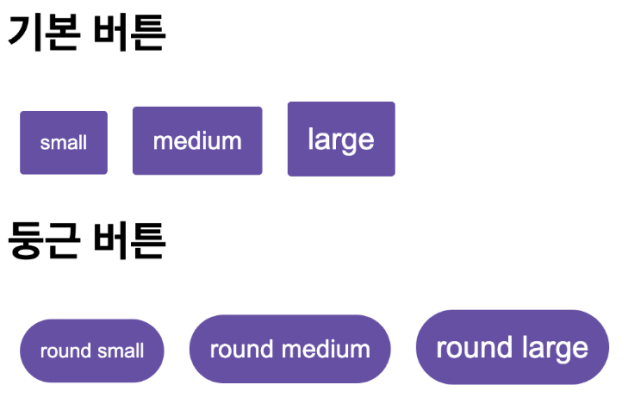 크기를 조절하는 size, 둥근 모양을 지정하는 round라는 Prop을 추가해 버튼 컴포넌트의 크기와 모양을 조절해 보도록 하겠다.