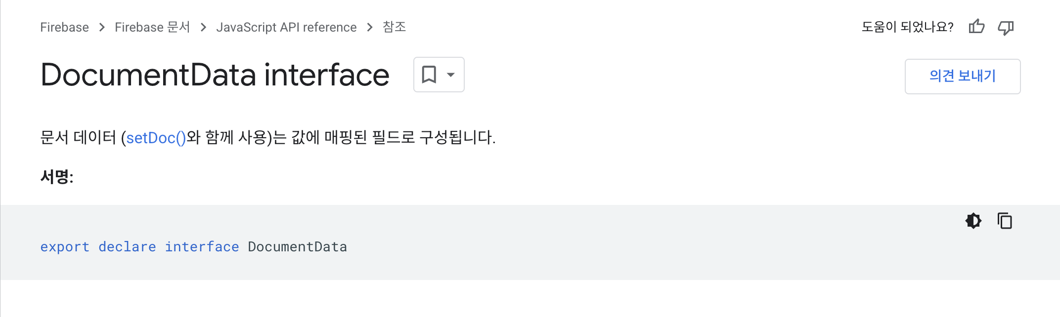 이렇게 공식문서에 DocumentData 란 인터페이스가 따로 있었고