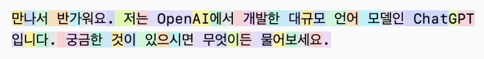 하지만 GPT4 훈련에 사용했던 cl100k_base tokenizer로 교체하면 인덴테이션을 하나의 토큰으로 인식하는 것을 확인할 수 있습니다. 눈으로 보기에도 이전보다 편안하네요. 카파씨 선생님이 입력한 예시 텍스트의 토큰 수도 300토큰에서 185토큰으로 줄어들었습니다.