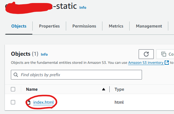 Edit static website hosting에서 입력한 파일은 index.html이었는데 업로드한 파일은 Index.html이었다.