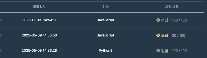 여담으로 ,,, 파이썬으로는 금방 풀었는데 .. 자스로 푸는게 꽤 손이 많이 갔다.
