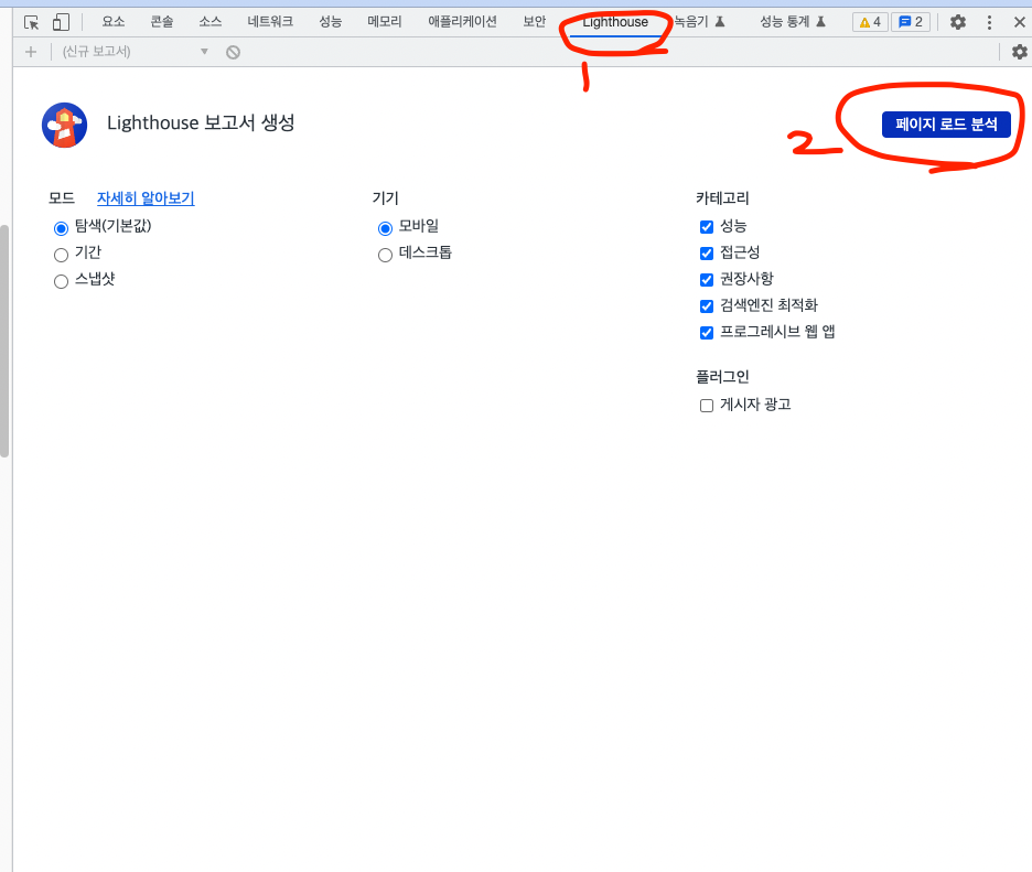 F-12 를 눌러서 개발자 도구에서 Light House 를 연다음, 페이지 로드 분석을 누르면 된다.