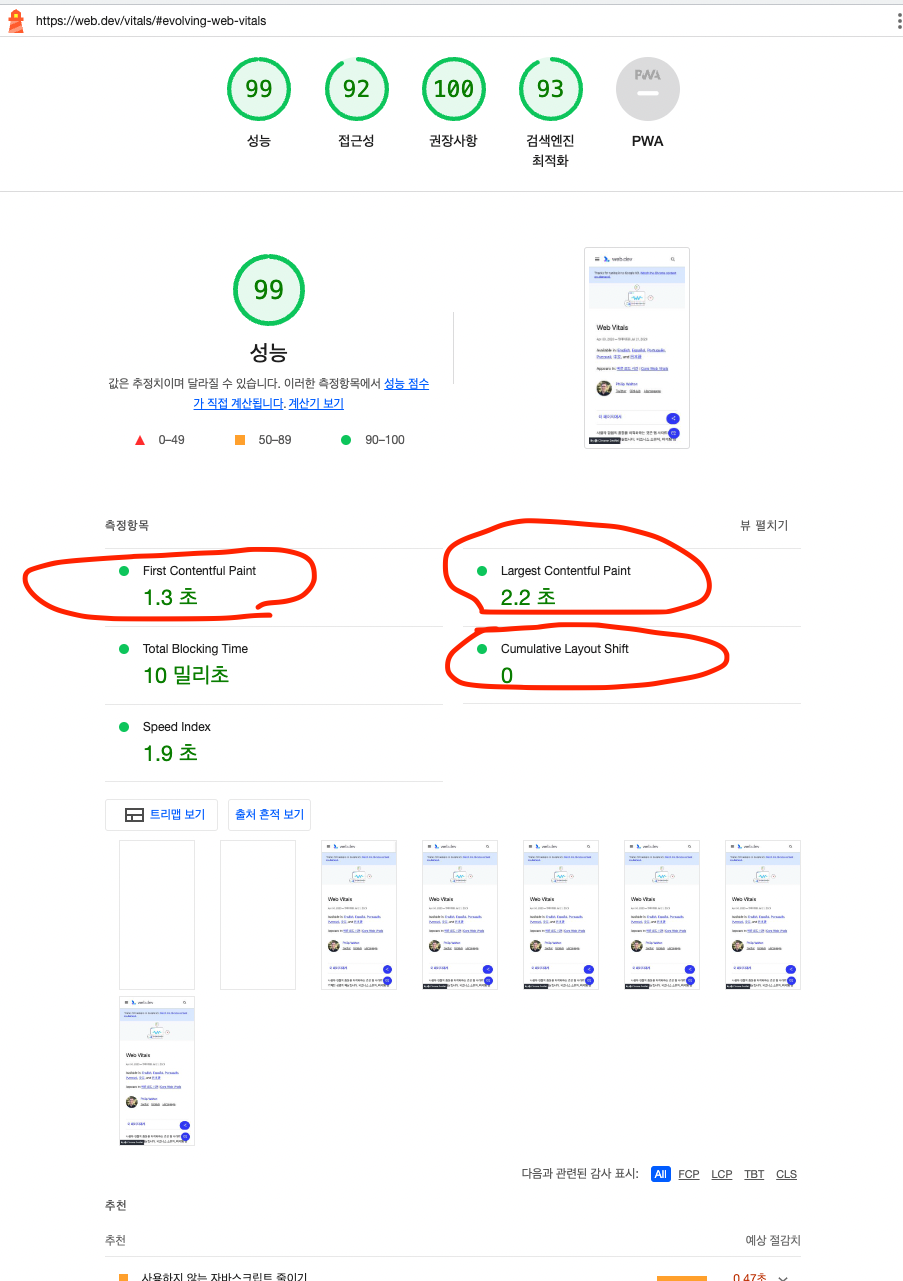 Core Web Vitals 기준에 따르면, 2.5초 이내에 페인팅이 완료되면 Good, 4초보다 오래걸리면 Bad 이다.