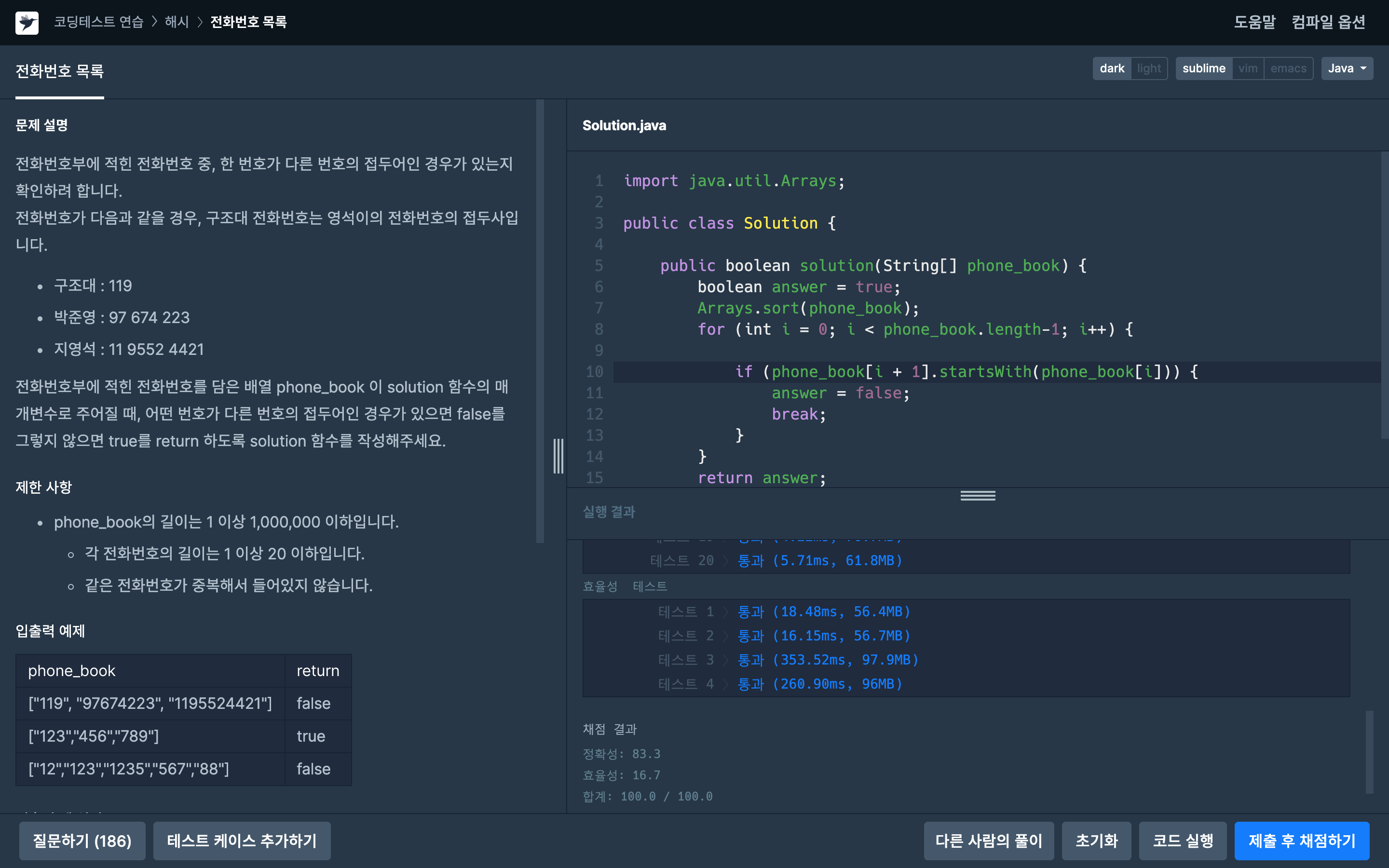 4. 채점 결과