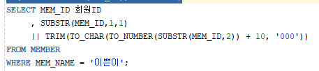 10을 더하여 새로운 회원ID로 조합하시오 ?