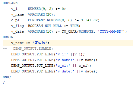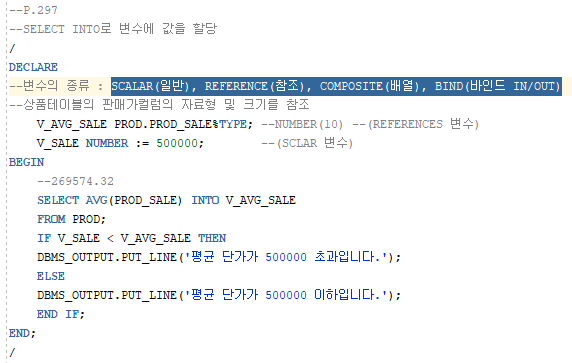 변수의 종류 : SCALAR(일반), REFERENCE(참조), COMPOSITE(배열), BIND(바인드 IN/OUT)