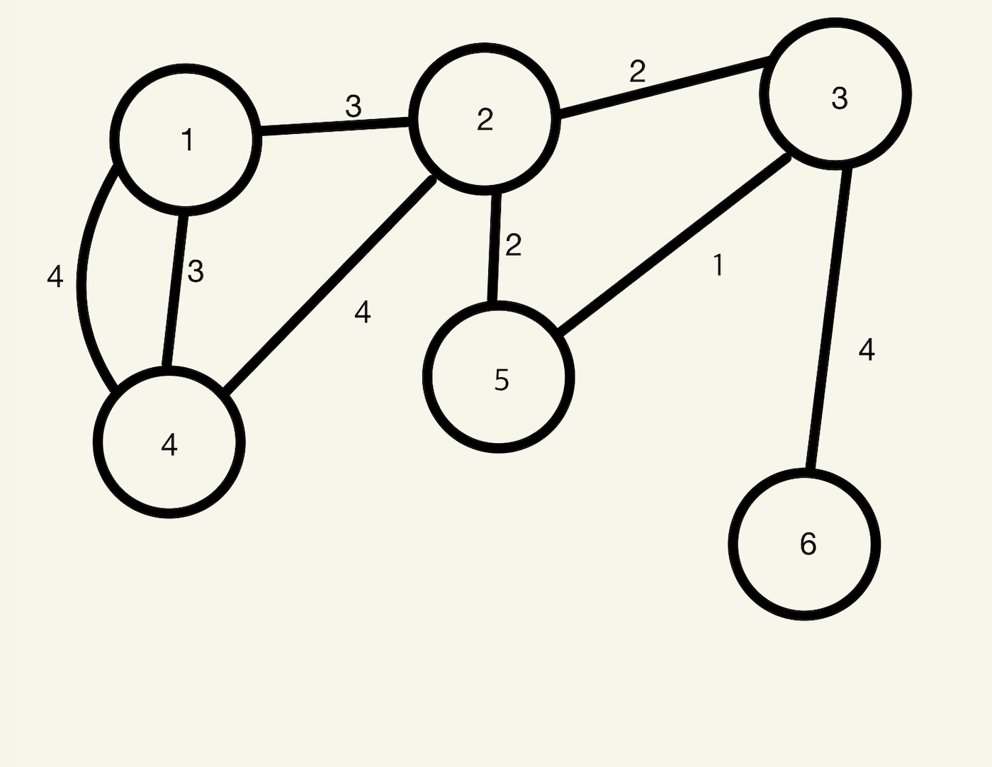 Step2 선택된 간선으로 갈 수 있는 노드에 대하여 그 노드로도 뻗을 수 있는 간선을 고려하여 1) 간선의 가중치가 가장 작고 2) 조사를 하지 않는 노드를 선택하여 계속 조사를 진행한다.