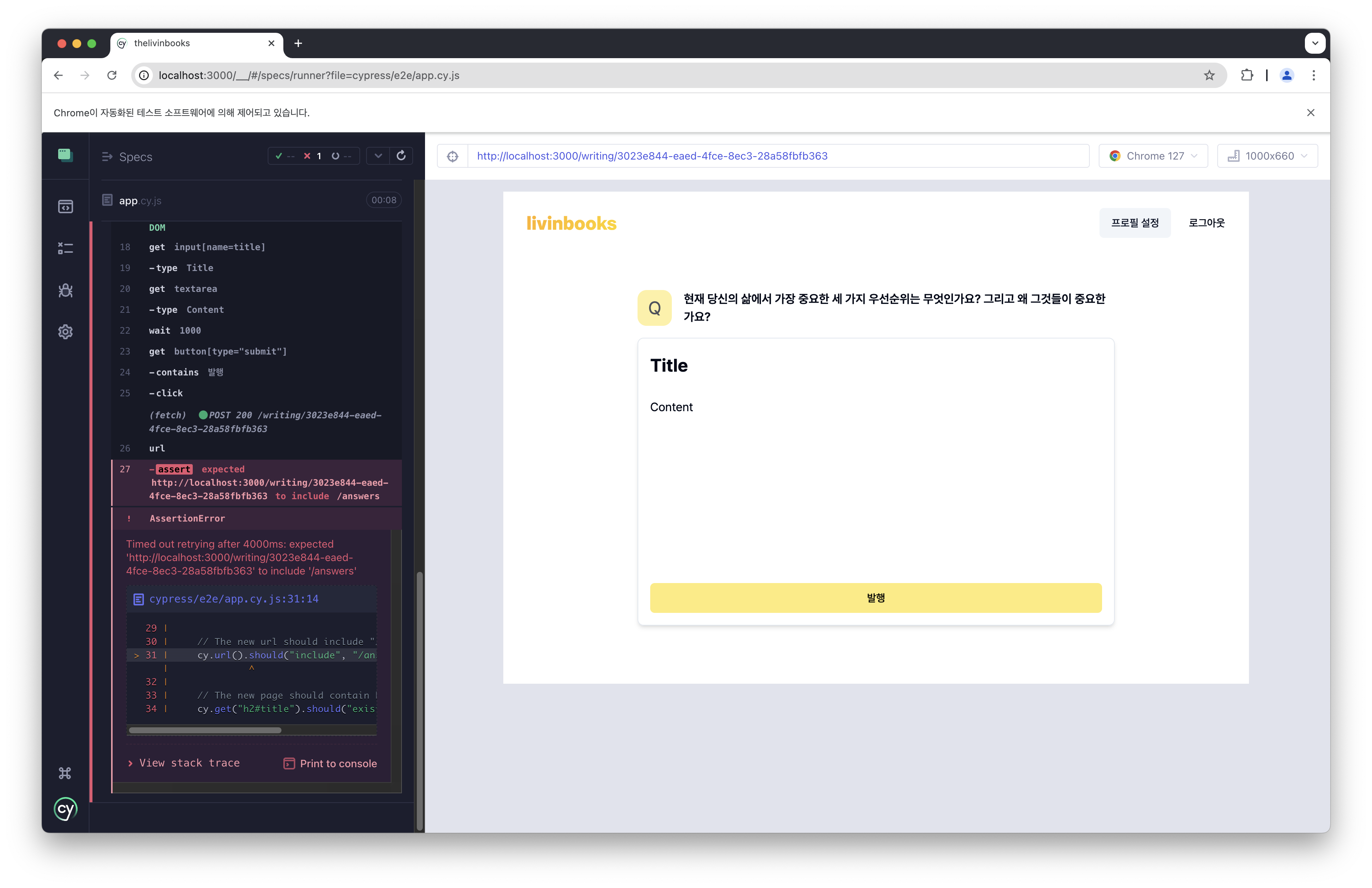 발행 버튼을 누르면, 디테일 페이지로 넘어가면서 /answers 가 URL에 포함되어 있는지 확인하는 과정에서 에러가 났습니다.