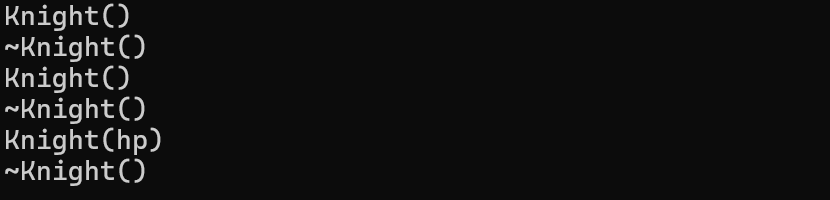 cout << "~Knight()" << endl;