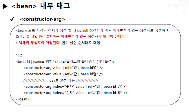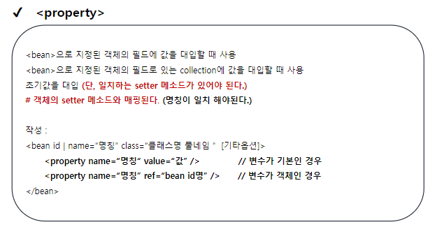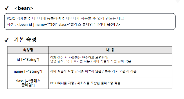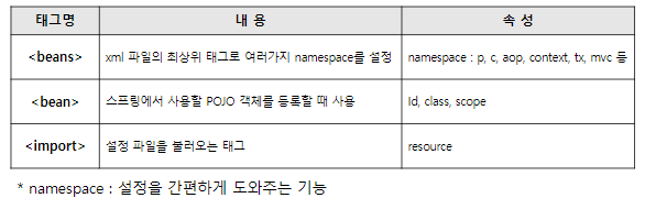 beans 태그를 최상위 태그로 하여 breans 태그 안에 다양한 태그로 값을 설정할 수 있다.