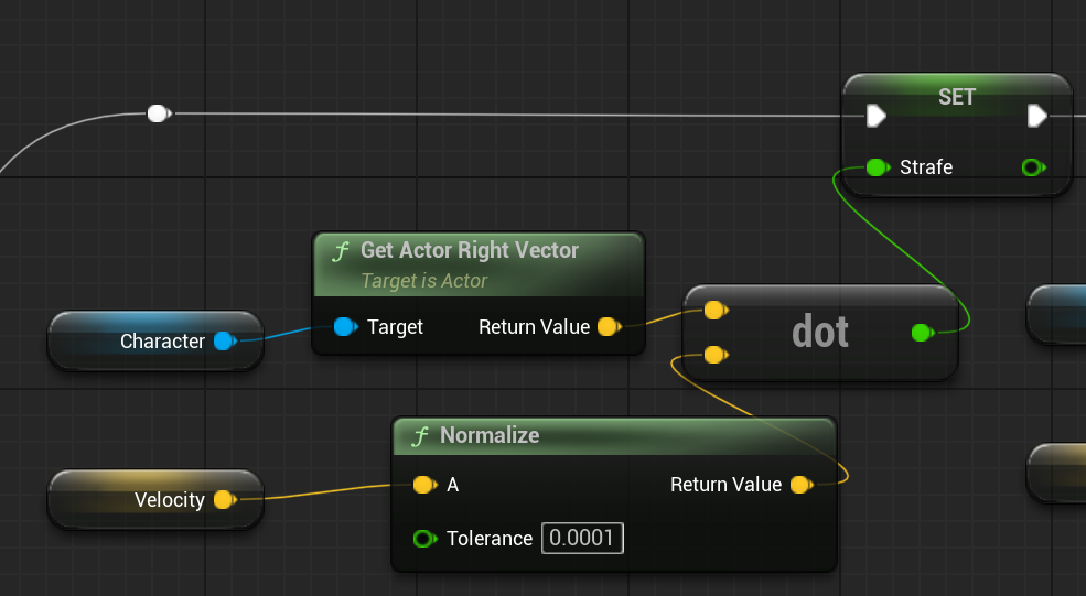 캐릭터의 Right Vector와 Velocity의 Normalize 값을 내적한 값으로 캐릭터가 이동하는 방향의 측면 값을 나타낸 값이다.